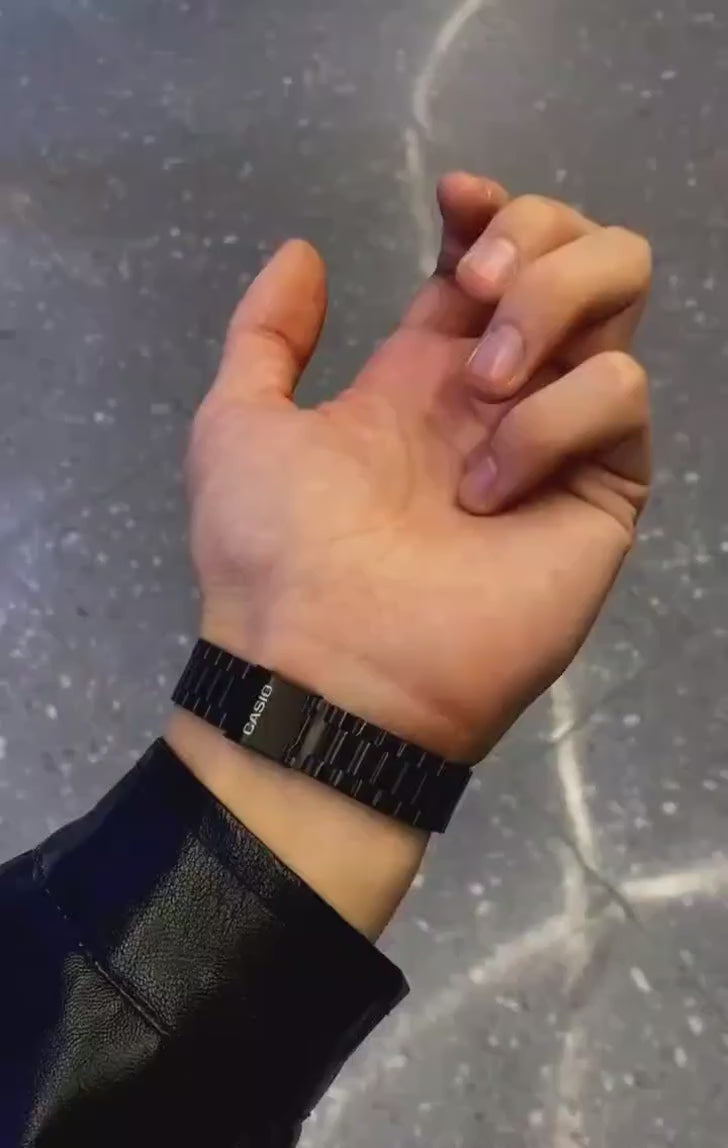 O material? Construído em aço inoxidável premium, o relógio não escurece com o tempo e, no caso dos modelos pretos, não descasca, mantendo a aparência impecável.